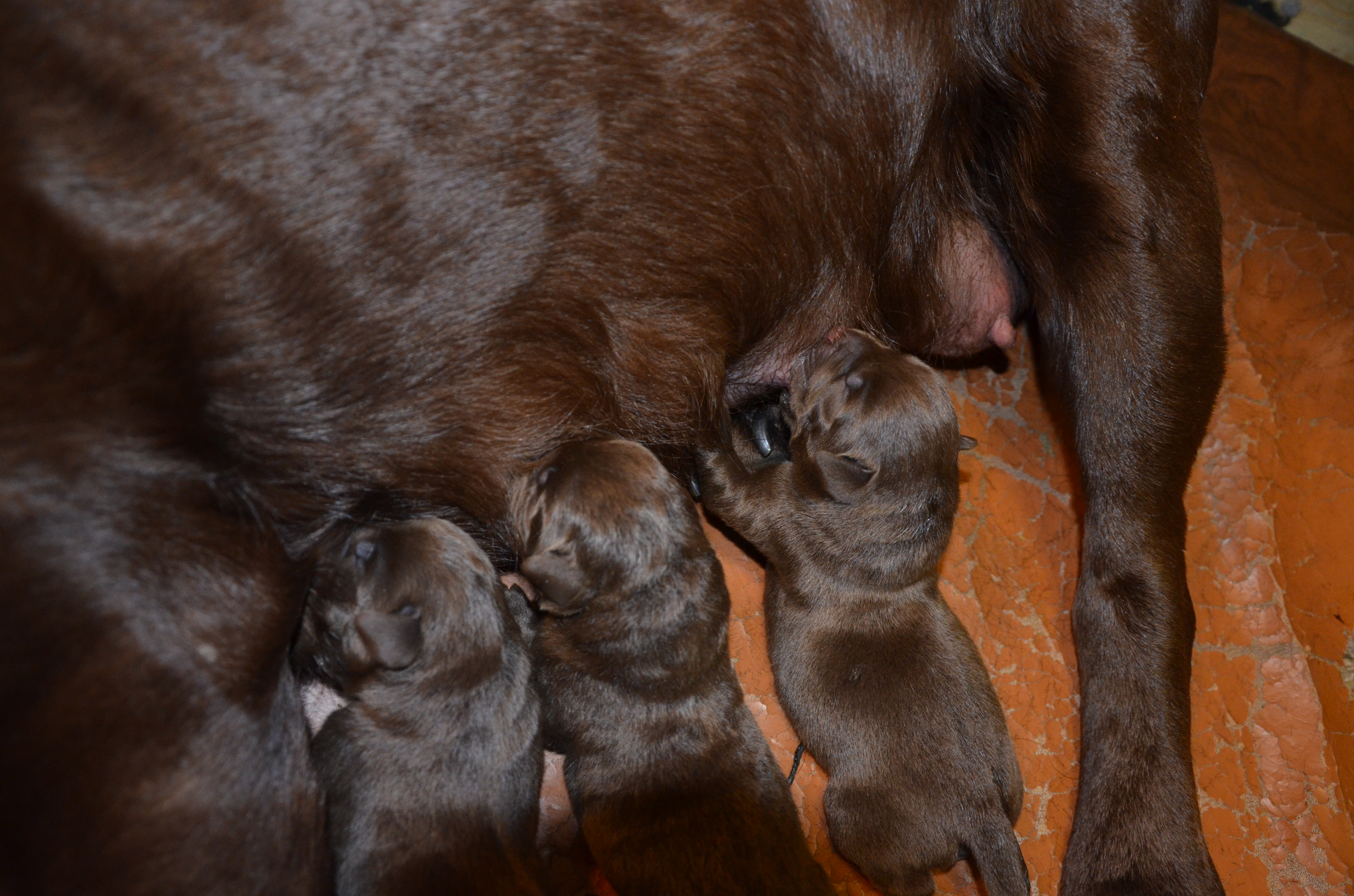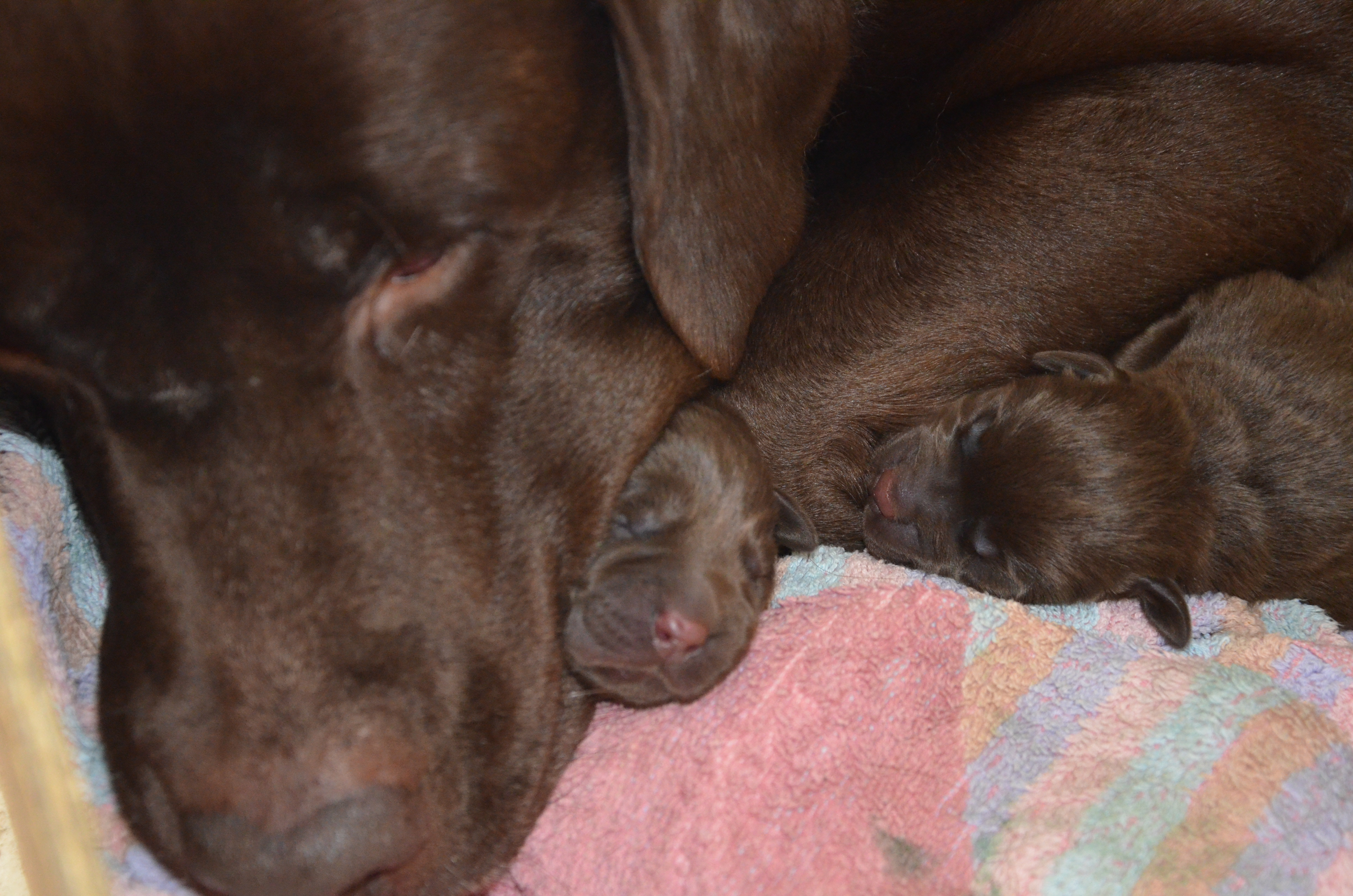 Tyvärr var den sista dödfödd, men det finns tre fina valpar och en mamma som mår alldeles utmärkt!
